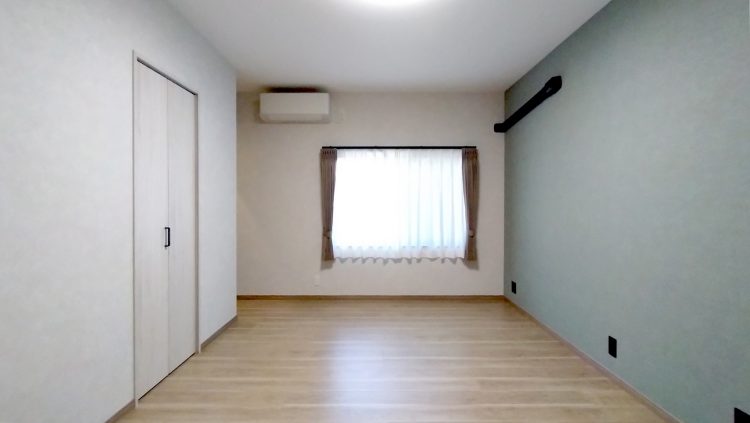 寝間の和室に北広縁を取り込み、約9.5帖の洋室に改修。ベッド2台が余裕で配置できます。約1.7帖のウォークインクローゼットが2ヶ所と半帖の物入で、大容量の収納となりました。リビングとの間の壁に遮音シートを施工し、新商品の簡易気密ドアを併用することで音漏れを軽減しました。